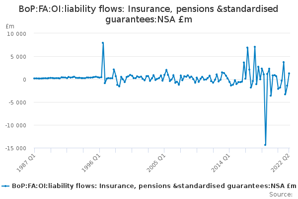 Download this time seriesBoP:FA:OI:liability flows: Insurance, pensions &standardised guarantees:NSA £m