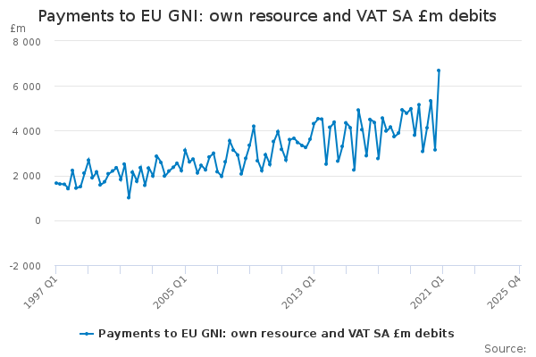 Download this time seriesPayments to EU GNI: own resource and VAT SA £m debits
