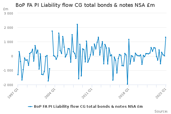 Download this time seriesBoP FA PI Liability flow CG total bonds & notes NSA £m