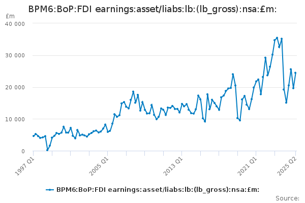 Download this time seriesBPM6:BoP:FDI earnings:asset/liabs:lb:(lb_gross):nsa:£m: