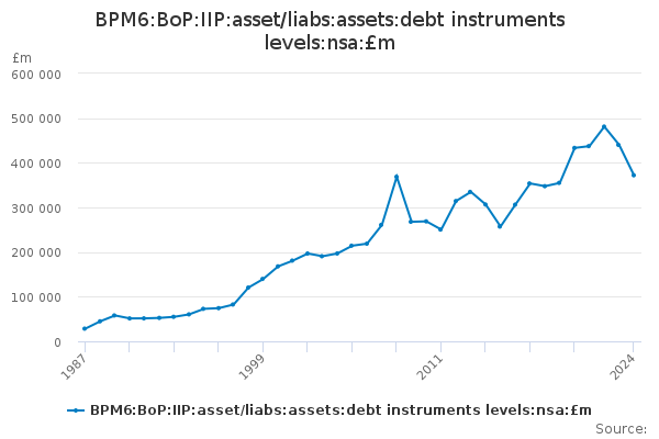 Download this time seriesBPM6:BoP:IIP:asset/liabs:assets:debt instruments levels:nsa:£m