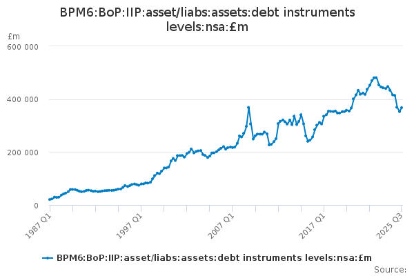 Download this time seriesBPM6:BoP:IIP:asset/liabs:assets:debt instruments levels:nsa:£m