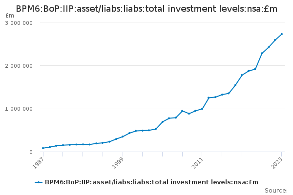 Download this time seriesBPM6:BoP:IIP:asset/liabs:liabs:total investment levels:nsa:£m