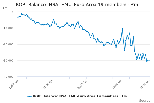 Download this time seriesBOP: Balance: NSA: EMU-Euro Area 19 members : £m