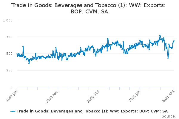 Download this time seriesTrade in Goods: Beverages and Tobacco (1): WW: Exports: BOP: CVM: SA