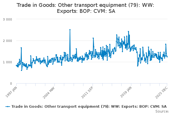 Download this time seriesTrade in Goods: Other transport equipment (79): WW: Exports: BOP: CVM: SA