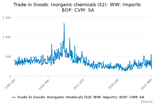 Download this time seriesTrade in Goods: Inorganic chemicals (52): WW: Imports: BOP: CVM: SA