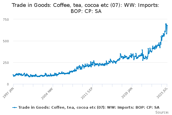 Download this time seriesTrade in Goods: Coffee, tea, cocoa etc (07): WW: Imports: BOP: CP: SA