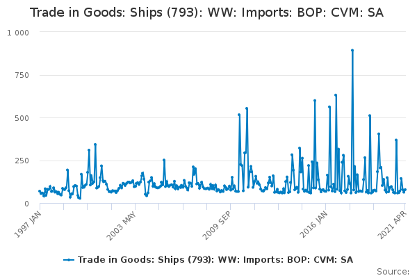 Download this time seriesTrade in Goods: Ships (793): WW: Imports: BOP: CVM: SA
