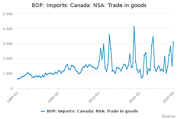 Download this time seriesBOP: Imports: Canada: NSA: Trade in goods