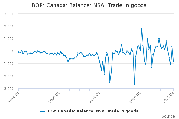 Download this time seriesBOP: Canada: Balance: NSA: Trade in goods