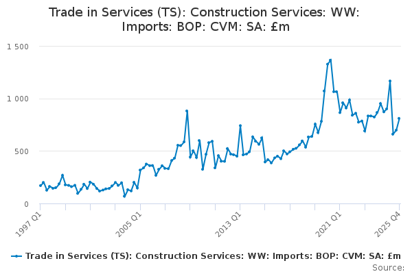 Download this time seriesTrade in Services (TS): Construction Services: WW: Imports: BOP: CVM: SA: £m