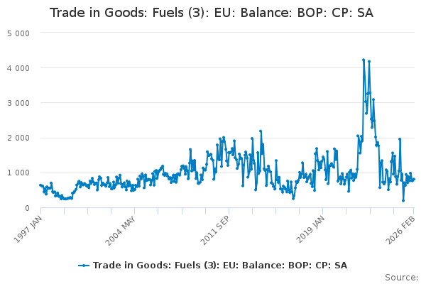 Download this time seriesTrade in Goods: Fuels (3): EU: Balance: BOP: CP: SA