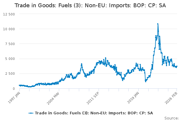 Download this time seriesTrade in Goods: Fuels (3): Non-EU: Imports: BOP: CP: SA