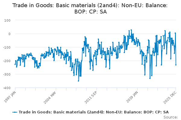Download this time seriesTrade in Goods: Basic materials (2and4): Non-EU: Balance: BOP: CP: SA