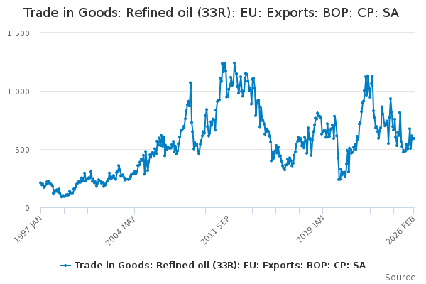 Download this time seriesTrade in Goods: Refined oil (33R): EU: Exports: BOP: CP: SA