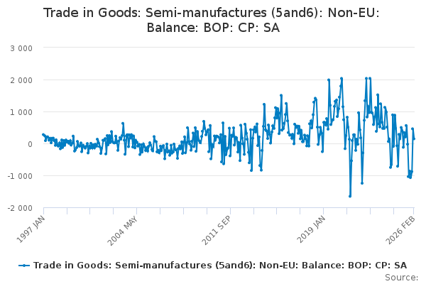 Download this time seriesTrade in Goods: Semi-manufactures (5and6): Non-EU: Balance: BOP: CP: SA