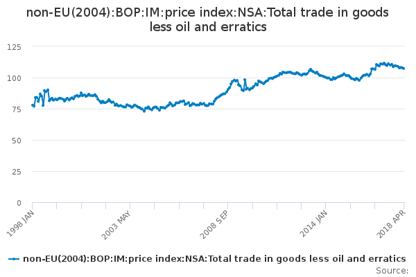 A small error in the trade in goods excluding oil and erratics import price indices occurred in the UK Trade: March 2018 publication tables and related time series dataset due to a processing error. The error impacted the trade in goods excluding oil and erratics import price index (series ELBA) for the period January 2018 to March 2018 in Table 3, the trade in goods excluding oil and erratics import price index growth rate in Table 4 and the trade in goods excluding oil and erratics import price indices for EU and non-EU (series SHCM and SHEB) in Table 6.