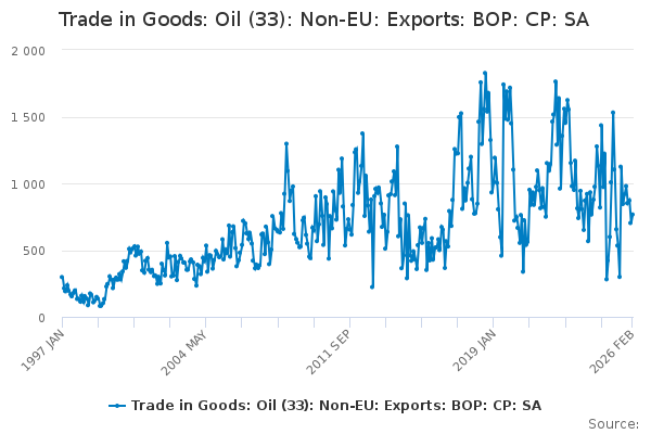 Download this time seriesTrade in Goods: Oil (33): Non-EU: Exports: BOP: CP: SA