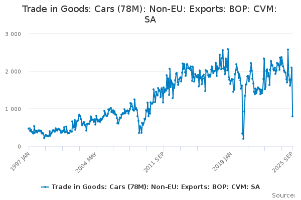 Download this time seriesTrade in Goods: Cars (78M): Non-EU: Exports: BOP: CVM: SA