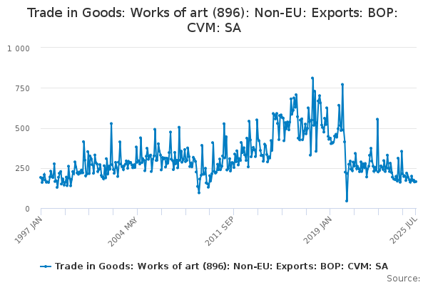 Download this time seriesTrade in Goods: Works of art (896): Non-EU: Exports: BOP: CVM: SA