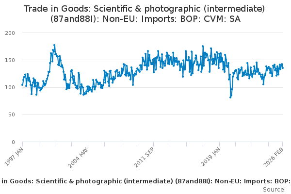 Download this time seriesTrade in Goods: Scientific & photographic (intermediate) (87and88I): Non-EU: Imports: BOP: CVM: SA