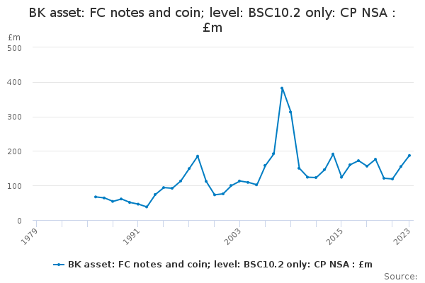 Download this time seriesBK asset: FC notes and coin; level: BSC10.2 only: CP NSA : £m