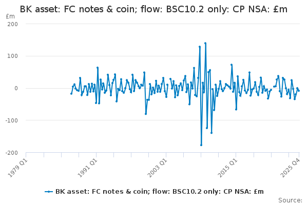 Download this time seriesBK asset: FC notes & coin; flow: BSC10.2 only: CP NSA: £m