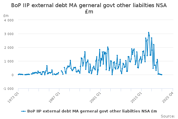 Download this time seriesBoP IIP external debt MA gerneral govt other liabilties NSA £m