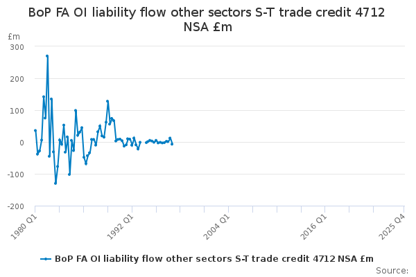 Download this time seriesBoP FA OI liability flow other sectors S-T trade credit 4712 NSA £m