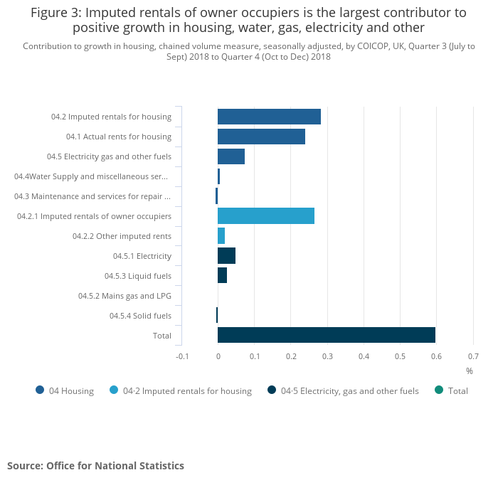 Contribution to growth in housing, chained volume measure, seasonally adjusted, by COICOP, UK, Quarter 3 (July to Sept) 2018 to Quarter 4 (Oct to Dec) 2018