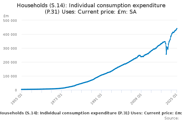 Download this time seriesHouseholds (S.14): Individual consumption expenditure (P.31) Uses: Current price: £m: SA