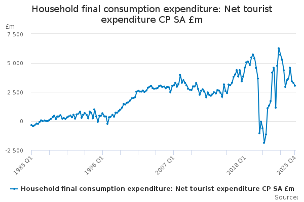 Download this time seriesHousehold final consumption expenditure: Net tourist expenditure CP SA £m