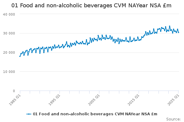 Download this time series01 Food and non-alcoholic beverages CVM NAYear NSA £m