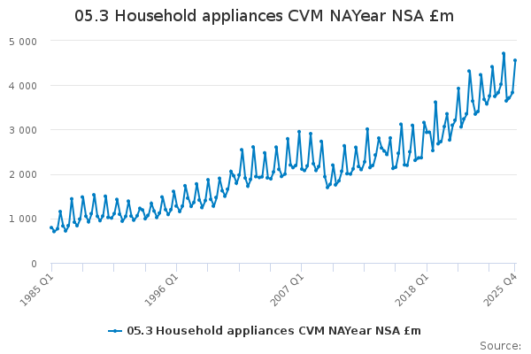Download this time series05.3 Household appliances CVM NAYear NSA £m