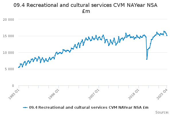 Download this time series09.4 Recreational and cultural services CVM NAYear NSA £m