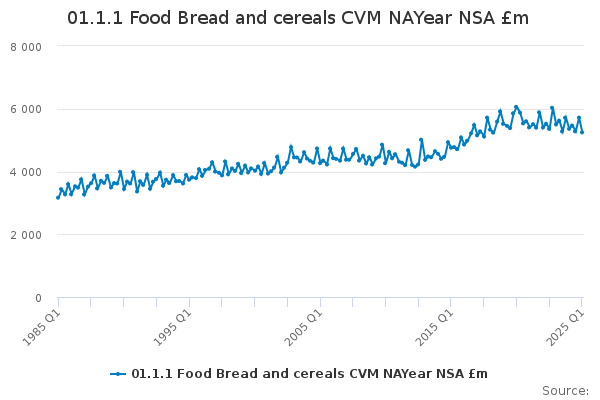 Download this time series01.1.1 Food Bread and cereals CVM NAYear NSA £m