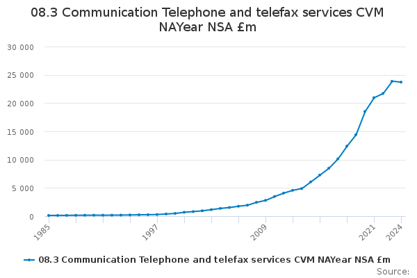 Download this time series08.3 Communication Telephone and telefax services CVM NAYear NSA £m
