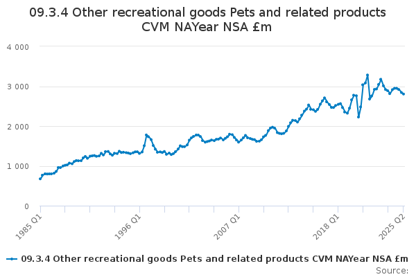 Download this time series09.3.4 Other recreational goods Pets and related products CVM NAYear NSA £m