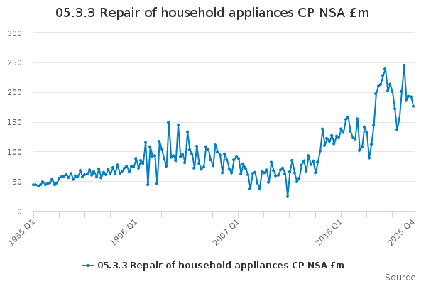 Download this time series05.3.3 Repair of household appliances CP NSA £m