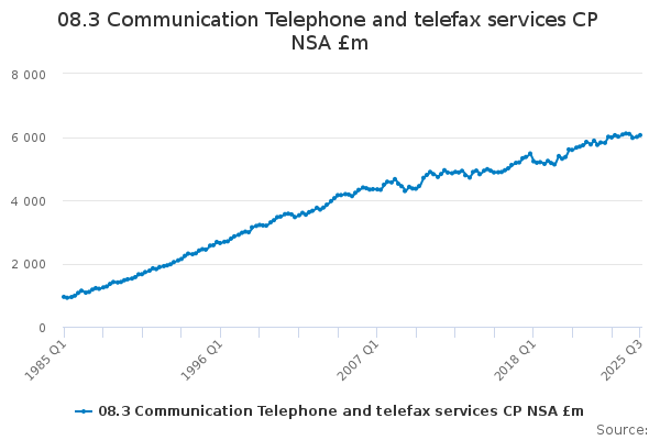 Download this time series08.3 Communication Telephone and telefax services CP NSA £m