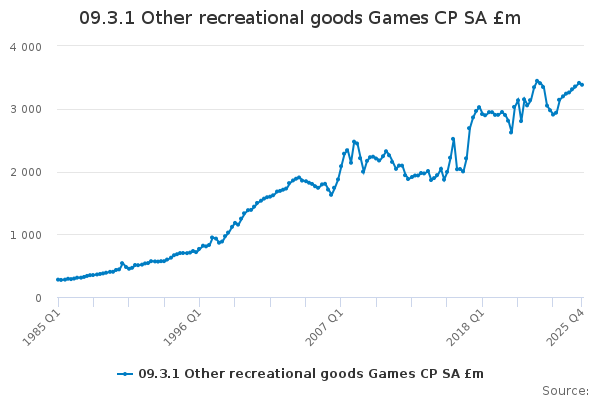 Download this time series09.3.1 Other recreational goods Games CP SA £m
