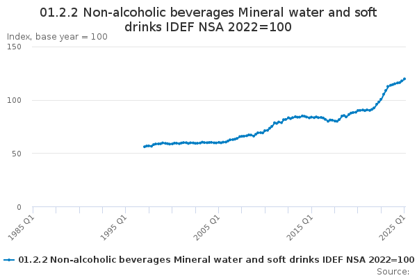 Download this time series01.2.2 Non-alcoholic beverages Mineral water and soft drinks IDEF NSA 2023=100
