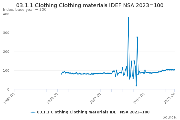 Download this time series03.1.1 Clothing Clothing materials IDEF NSA 2023=100