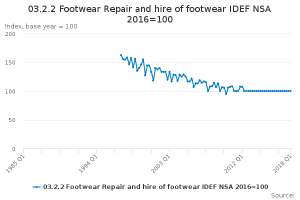 Download this time series03.2.2 Footwear Repair and hire of footwear IDEF NSA 2016=100