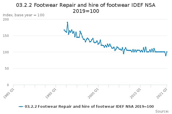 Download this time series03.2.2 Footwear Repair and hire of footwear IDEF NSA 2019=100