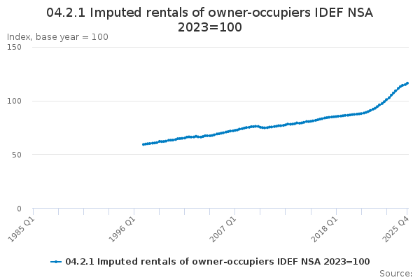 Download this time series04.2.1 Imputed rentals of owner-occupiers IDEF NSA 2023=100