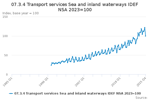 Download this time series07.3.4 Transport services Sea and inland waterways IDEF NSA 2023=100