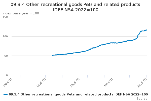 Download this time series09.3.4 Other recreational goods Pets and related products IDEF NSA 2023=100