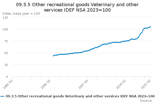Download this time series09.3.5 Other recreational goods Veterinary and other services IDEF NSA 2023=100
